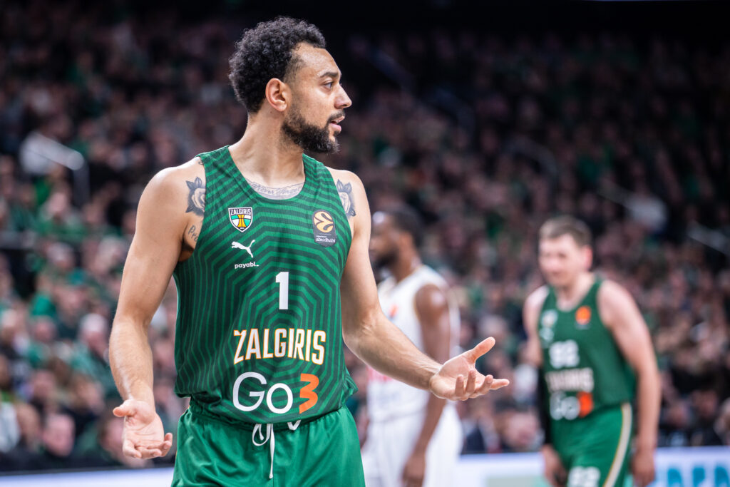 Daugiausiai „Žalgiryje“ uždirbantis krepšininkas rungtynes baigė pataikęs tik vieną metimą iš septynių ir surinkęs 5 taškus (0/5 dvit., 1/2 trit.).